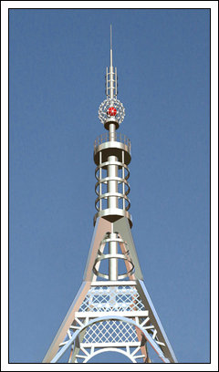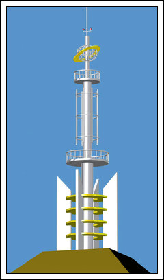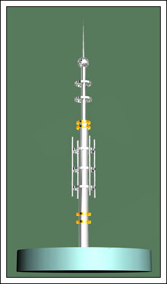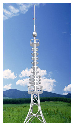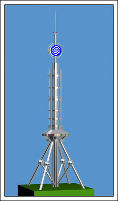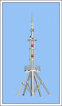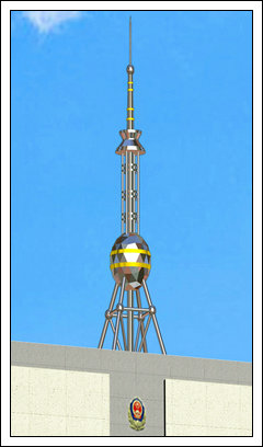 在塔的上端安有國產(chǎn)雷電接閃器或進(jìn)口提前放電器避雷針,以有效的保護建筑物不被雷擊。