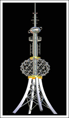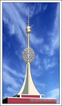 裝飾塔又叫工藝塔或不銹鋼塔多建于樓頂之上,它集避雷,通訊,裝飾于一體,塔體內(nèi)部材料主要采用角鋼、鋼管結(jié)構(gòu),其材質(zhì)為普通碳素鋼符合Q235型鋼,塔體外包不銹鋼板。