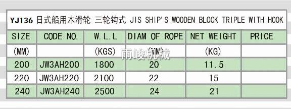 • YJ136 日式船用滑輪 三輪鉤式