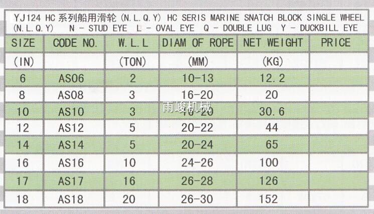 YJ124 HC系列船用滑車