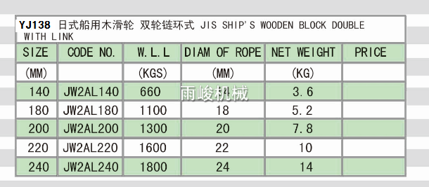 YJ138 日式船用木滑輪 雙輪鏈環(huán)式
