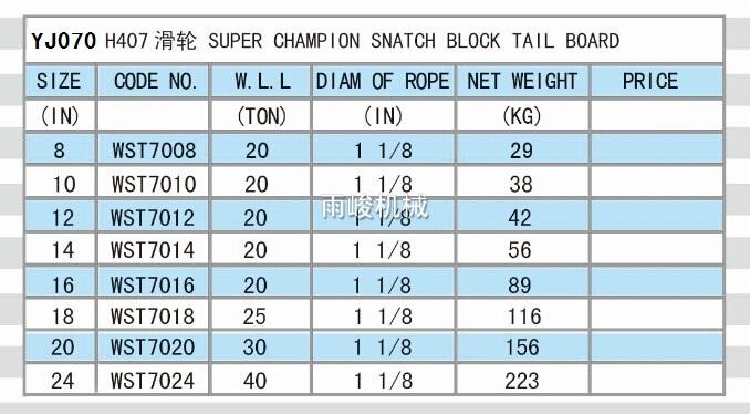 • 產(chǎn)品描述:該滑輪為美式重型鋼絲繩滑輪,為一個系列,該產(chǎn)品是其中最基礎的一款產(chǎn)品。主要銷售市場為美洲,中東,亞洲地區(qū),配鋼絲繩用。該款產(chǎn)品尺寸從3寸到18寸,拉力從2噸到15噸,鋼絲繩徑從3/8"到1寸,跨度比較大,可以滿足起重方面的大部分需求。