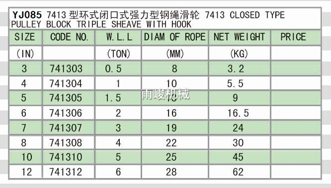 YJ085 7413型環(huán)式閉口式強(qiáng)力型鋼繩滑輪