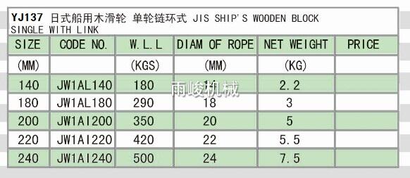 YJ137 日式船用木滑輪 單輪鏈環(huán)式