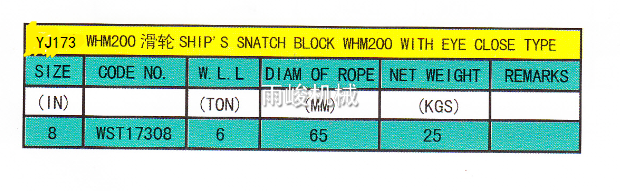 • 產(chǎn)品描述:該產(chǎn)品代號WHM200,只有一個尺寸,8寸拉力6T。最大繩徑65MM,適用范圍廣