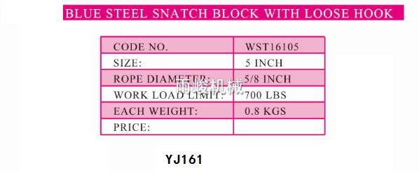 • YJ161 鉤式鋼絲繩滑輪