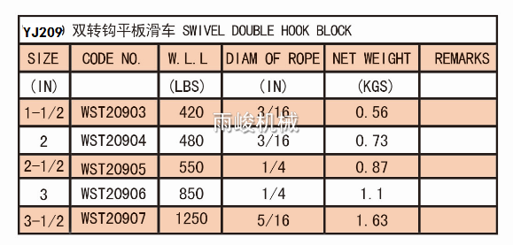 • YJ209 SWIVEL DOUBLE HOOK BLOCK