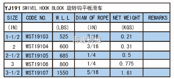 • Product description: These kinds of blocks have many types, swivel eyes, swivel hooks, fixed eyes, and also flat mount blocks. The size is small so it it very flexible, size from 1-1/2" to 5 inch, the WLL from 525 LBS to