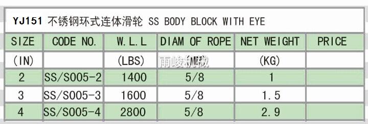 • YJ151 SS BODY BLOCK WITH EYE