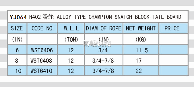 • YJ064 ALLOY TYPE CHAMPION SNATCH BLOCK TALL BOARD