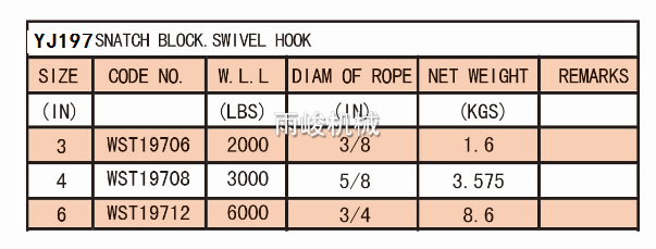 • YJ197 SNATCH BLOCK SWIVEL HOOK